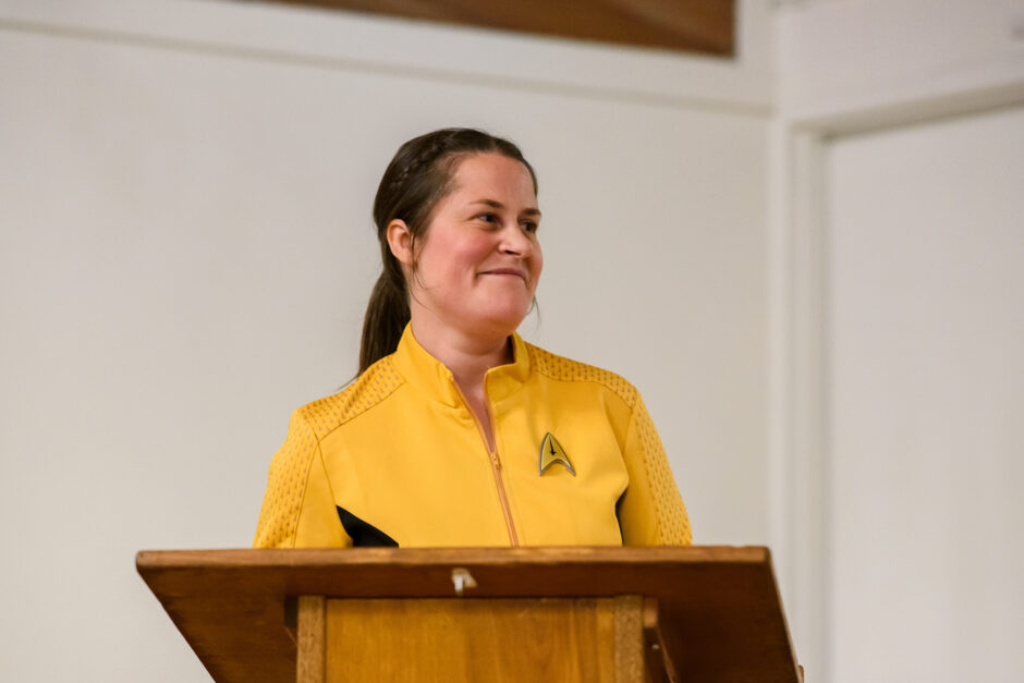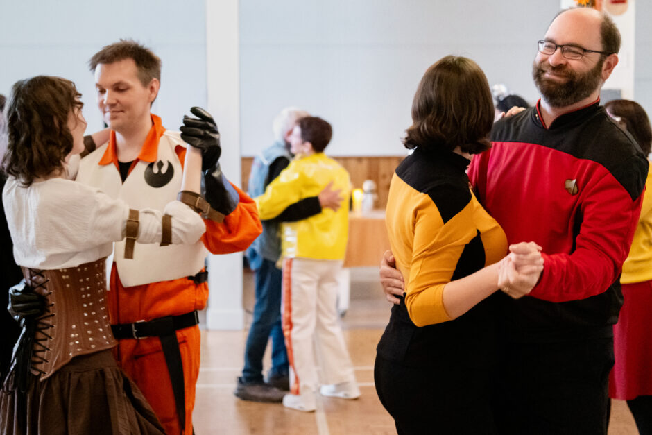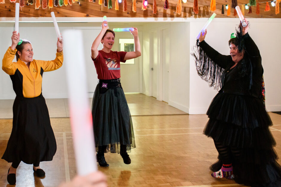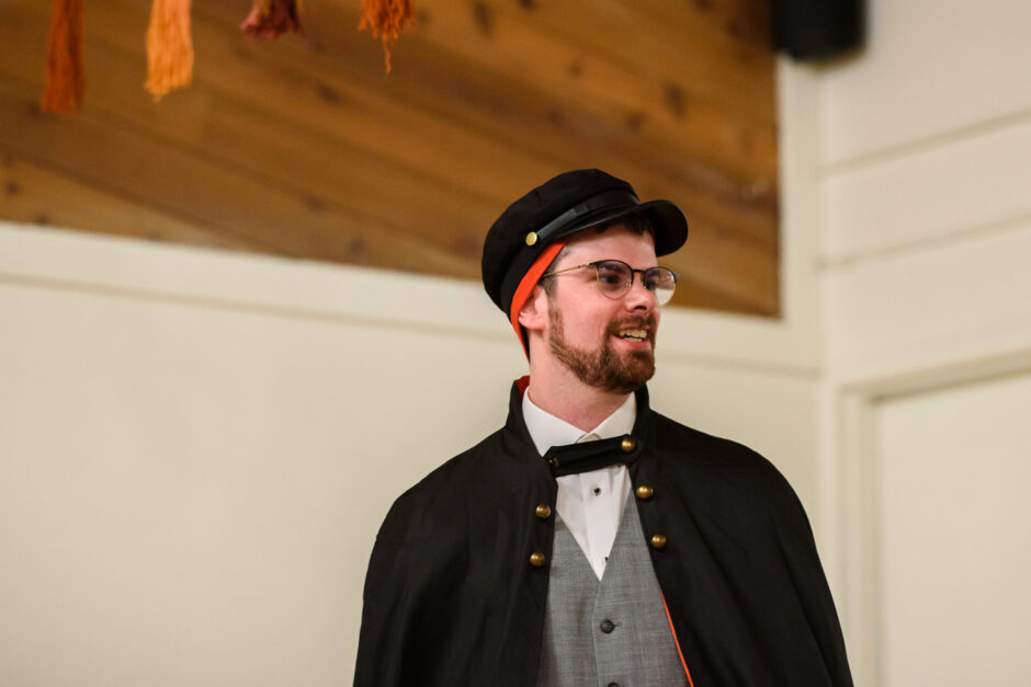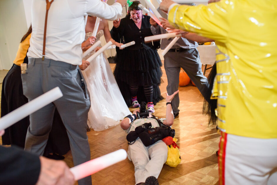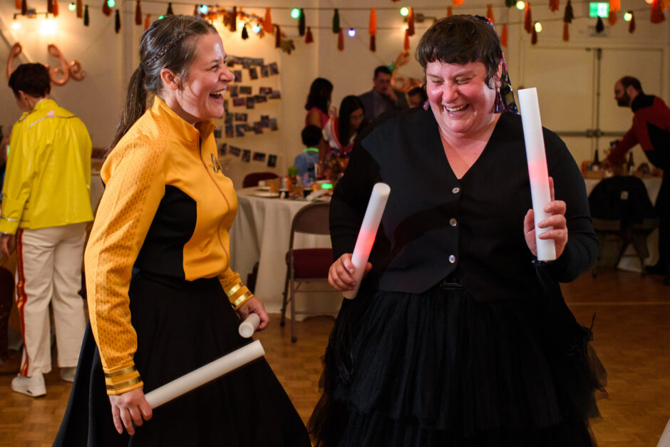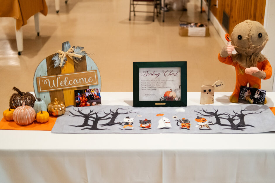 The couple suggested their guests wear costumes, but they weren’t sure if everyone would. Every guest came through pretty spectacularly though! Cathy’s brother officiated the ceremony dressed as Gandalf (if Gandalf ever wore a suit). Their MC (and date) dressed as a character from Over the Garden Wall.